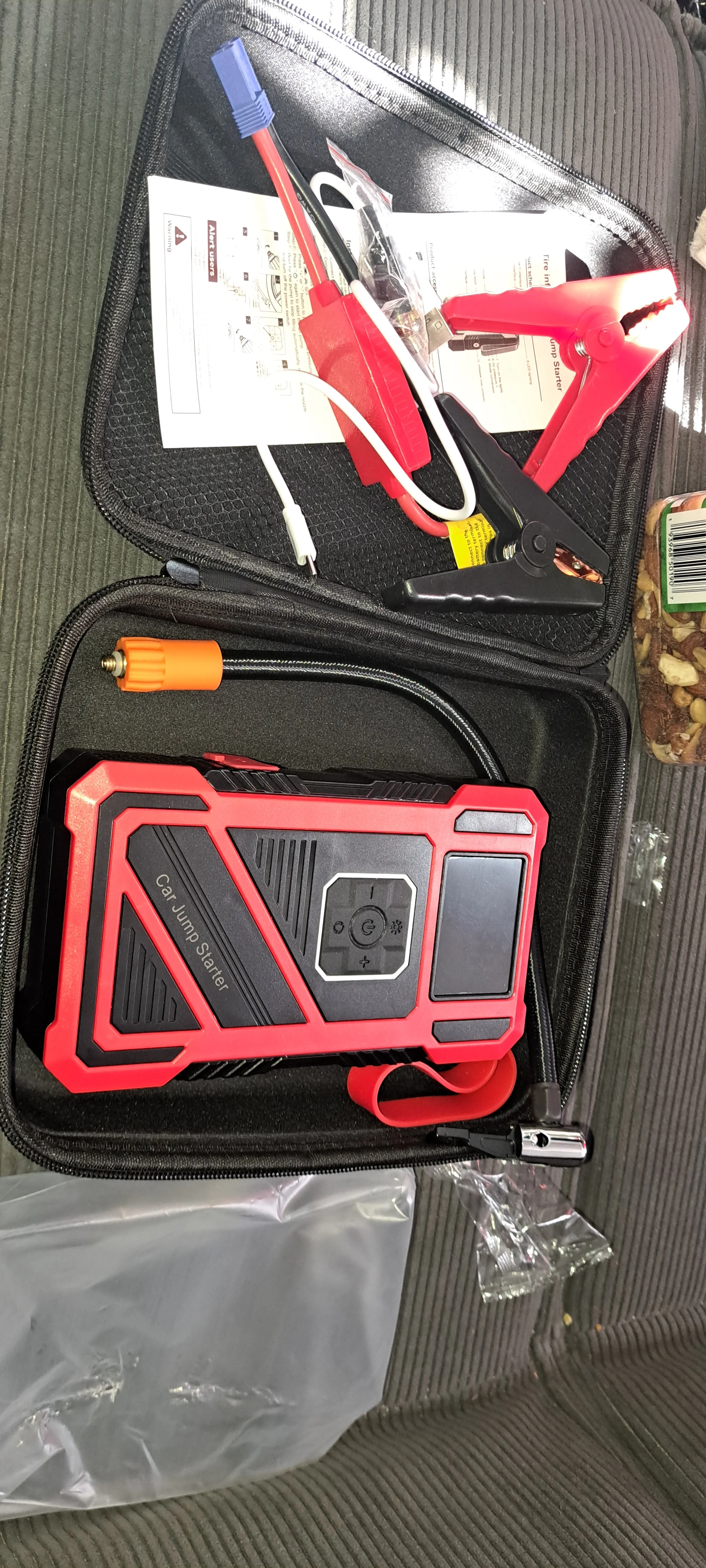 4-in-1 휴대용 미니 자동차 점퍼 부스터 및 타이어 팽창기 12V 8000mAh 배터리 점프 스타터 전원 은행 자동차 점프 스타터 공기 펌프